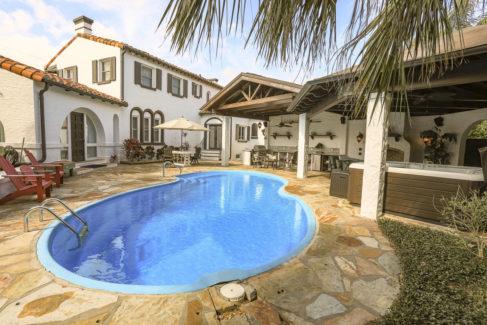 Rare Opportunity to acquire this 1920 Estate Property! This Monterey Style Mansion is recognized on The National Register of Historic Places! This AMAZING Pool Estate retains the character of an Historic Home and is enhanced with all the modern conveniences & HIGH technology, guaranteed to meet the demand of todays astute buyer. Natural Gas to the property, on demand hot water, updated electric & solar heated pool are just a few of the behind the scene improvements enhancing this property. Renovated Kitchen appointments would delight any Chef! All 3 Ensuite Bedrooms have been luxuriously updated. Private Master Bedroom Suite with Fireplace has views of the IntraCoastal Waterway and the Estates Private Backyard Resort Oasis complete with Covered Lanai, Kitchen, Living Area & Hot Tub!